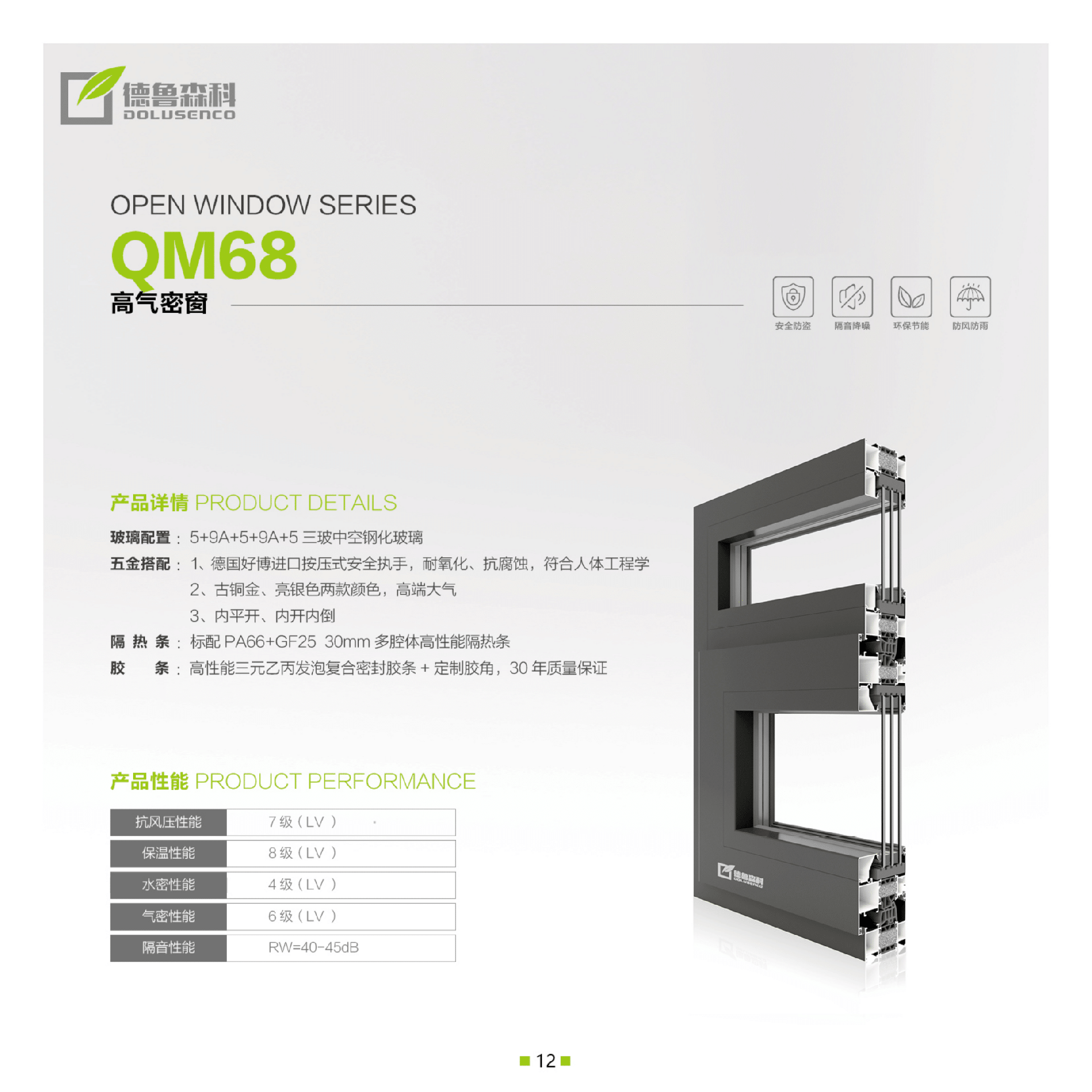 ✹欧标30mmPA66多腔体隔热条,膨胀收缩比与铝材几乎同步,大大提高了扭力、强度、抗老化性,隔热、隔音性能佳。